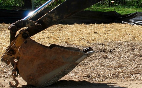 I had been temporarily optimistic last October when the pipe supply dwindled, only to have my hopes dashed with new inventory. But today, oh joy. No more trailer. No more concrete sewer pipes. Just bare brown earth, and then later, hay piled on top.