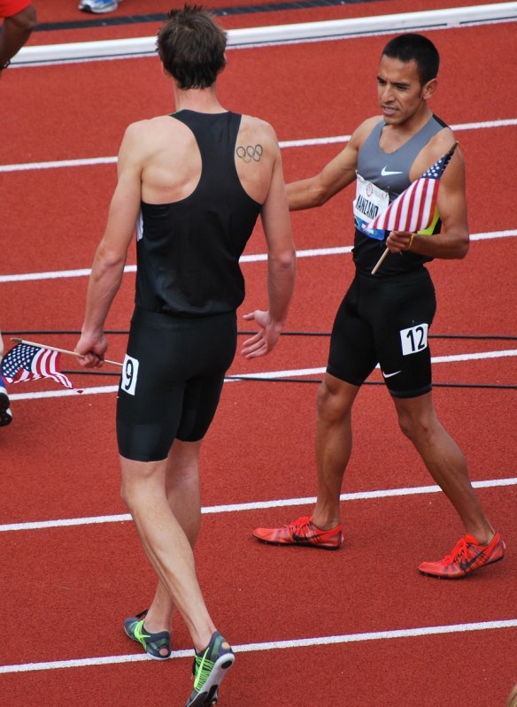 Leo Manzano and Andrew Wheating celebrate making the men’s 1500 team. Both are Olympic team repeats.