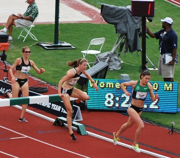 My favorite proud aunt story of the trials came from the women’s steeplechase. Bridget Franek had yet to race the time she needed to get the ‘A’ qualifier for the Olympics (a time of 9:46.00), and the final at the trials would be her last chance to make the team. So not only did she need to finish in one of the top three spots, she had to come in at least as fast as 9:46.00. To add to the pressure, her aunt had already bought a plane ticket to London to see Franek compete in the Olympics.