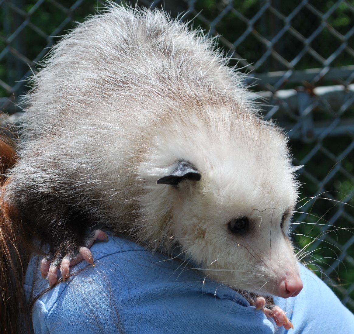Our last stop was the strangest: a stop to visit the resident possum. She’s an orphan that came to the preserve after a motorist who had hit her mother and siblings found that she was the only baby left alive. I had to admit she was pretty cute … for a possum.