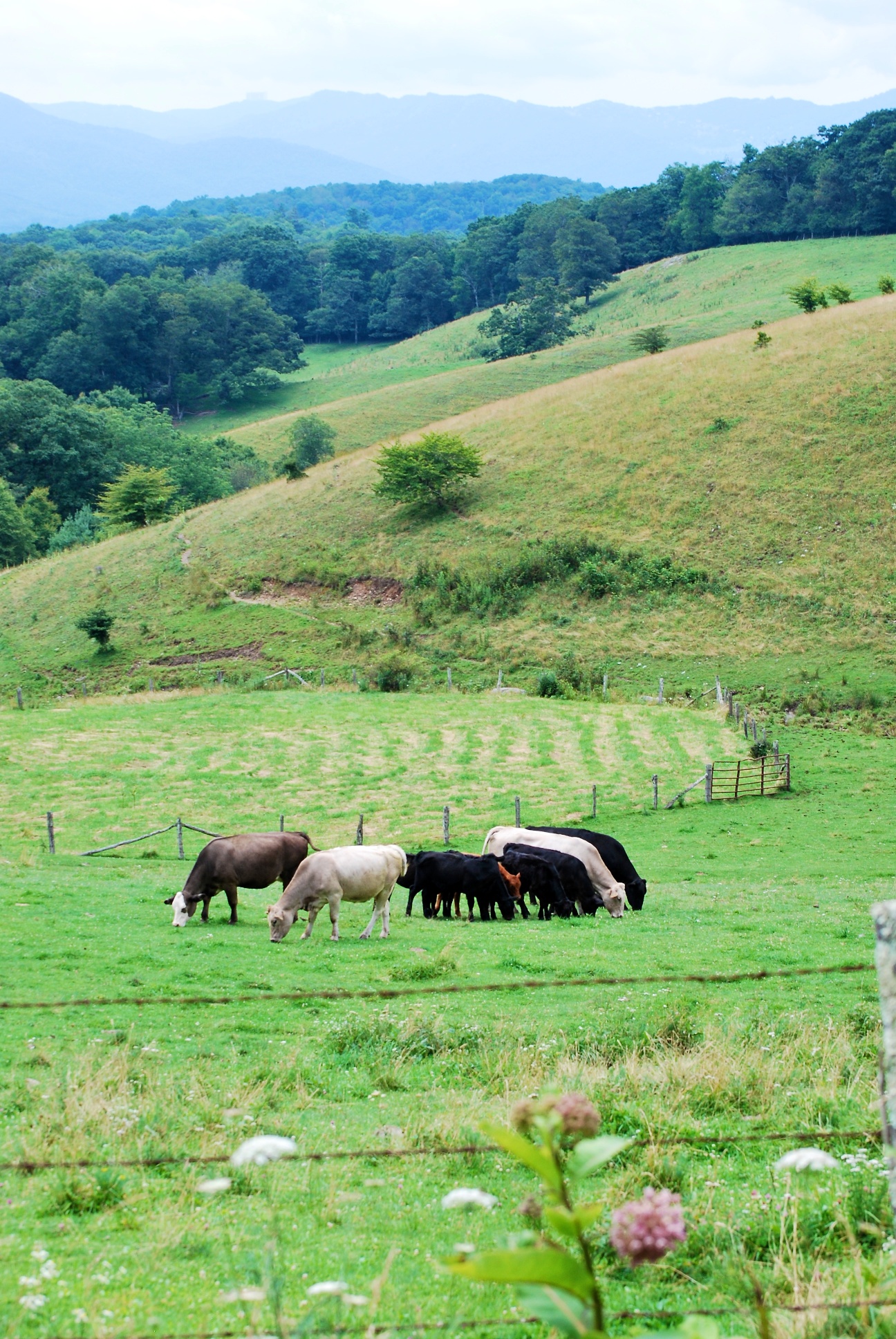 By the time I finished my hike, the cows had moved to a lower pasture to graze. I love how the calves are squished together in a line.