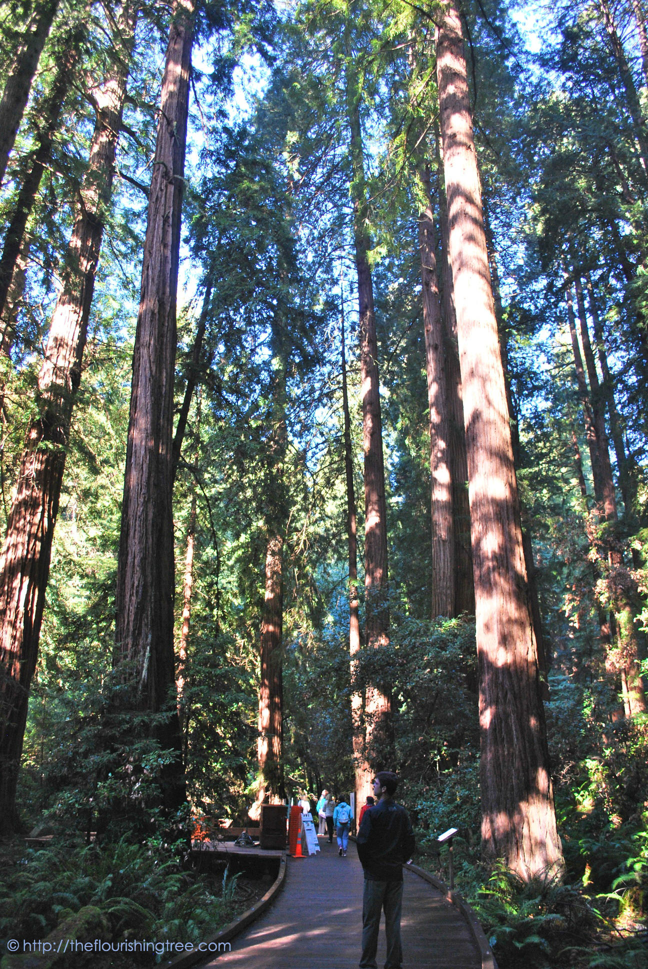My husband and I spent the weekend out in California’s Bay Area, and while it wasn’t his first trip to the area, it was mine. I wanted to find some things to do that would be new for him, and so I polled friends on Facebook for some suggestions. Several friends mentioned Muir Woods, and one used these words: “A few minutes north of there is Muir Woods where you can stare at the bottoms of very big trees.” I thought, “I must go.”
