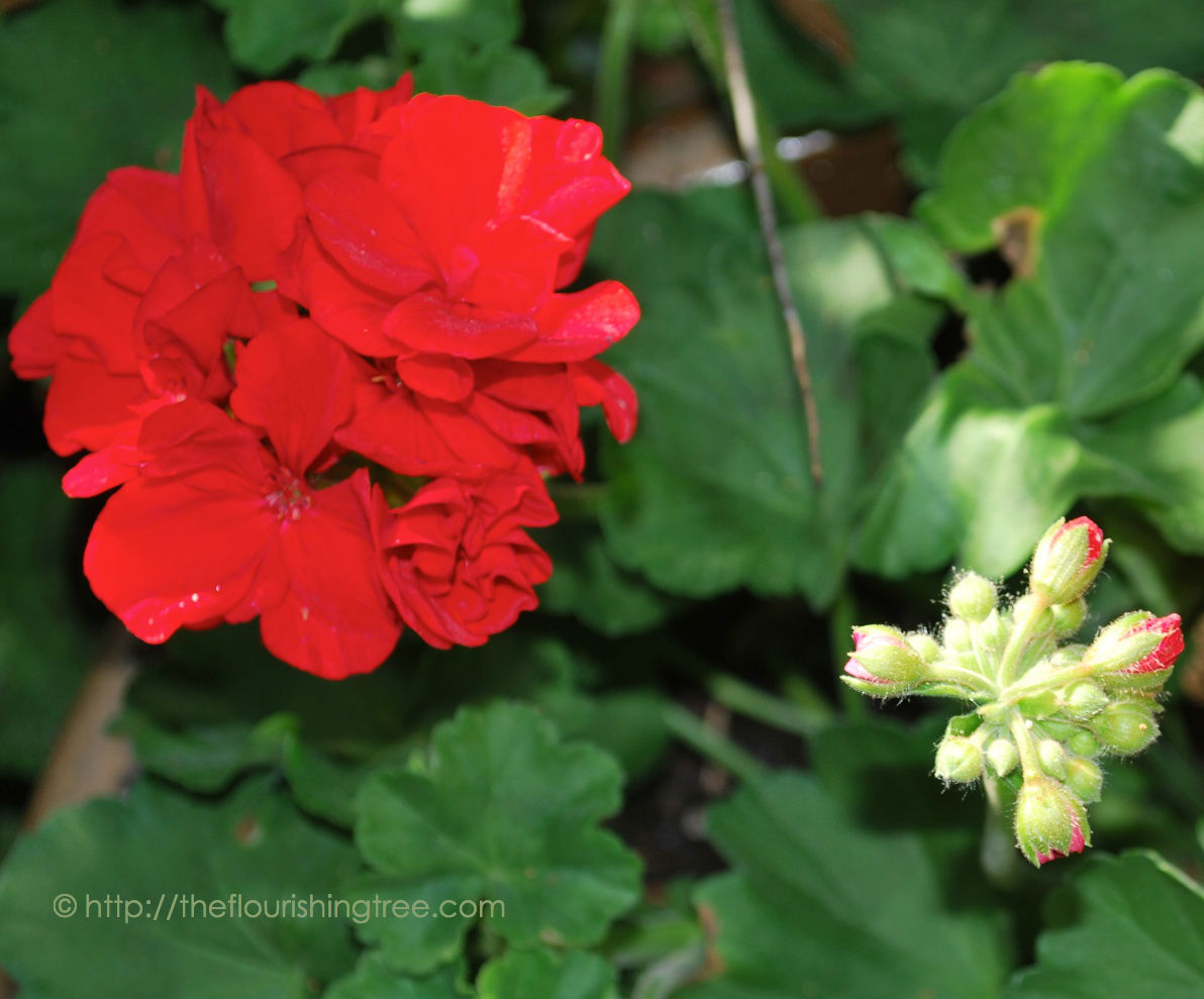 I made my first trip of the year to the local garden center this past weekend for container herbs and flowers. The front porch steps need their own variety of riot, too, and I’ve started with red geraniums.