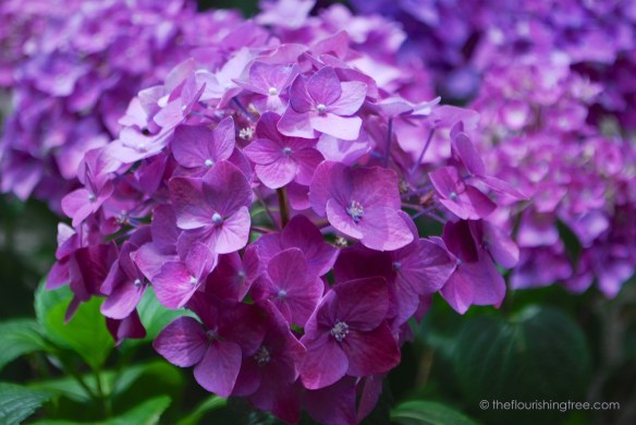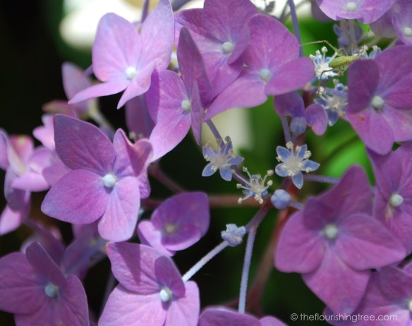 Look closely at the flowers, within flowers, within flowers that make up hydrangeas. (If you look close enough, you may also see a critter visiting this particular hydrangea.)