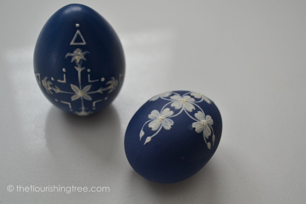 Several Christmases ago, I shared photos of a Christmas jar with the star, the wise men, and the little town of Bethlehem. After my friend who painted the jar saw the post, she invited me to her house and asked me to pick out Easter eggs for my husband and me. I cherish these Easter eggs and delight in displaying them each year.