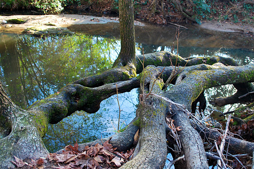 | Trees and their roots growing by a creek |
