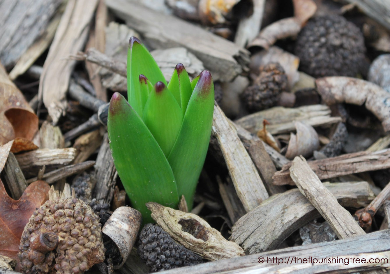 Just yesterday, I noticed my hyacinth bulbs poking up through the mulch. They were a Valentine’s gift from my husband several years ago, and I’m always happy when they come back in February.